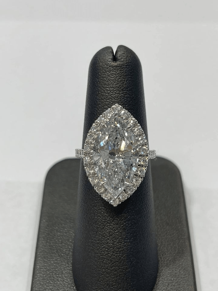 Button14K White Gold Halo Marquis Diamond Ring.